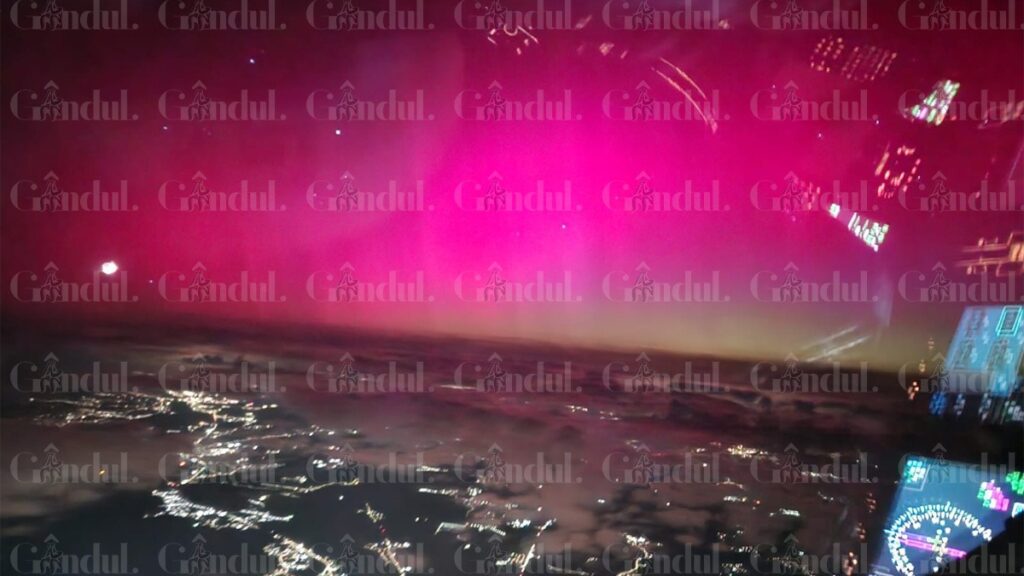 Comandatul unei curse Tarom a surprins aurora boreală din cabina avionului care făcea o cursă de la București la Iași....