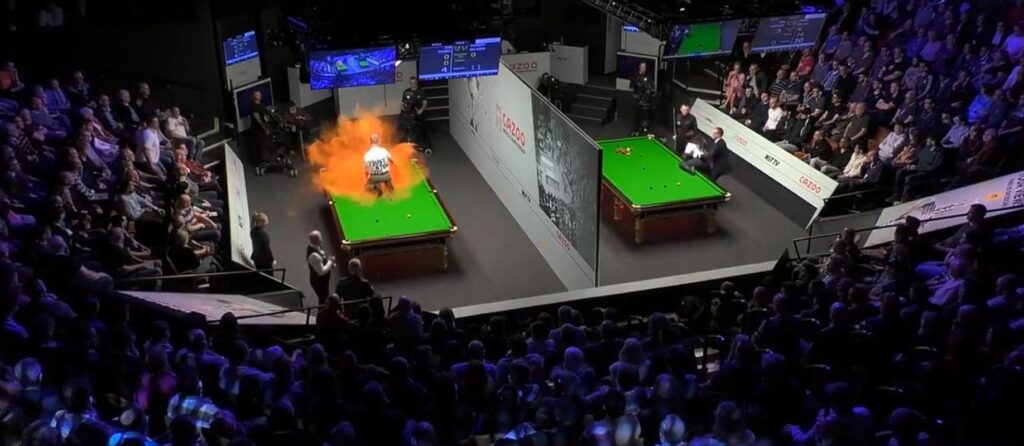La Campionatul Mondial de Snooker, la meciul dintre Milkins și Perry, de la Teatrul Crucible din Sheffield, un bărbat s-a...